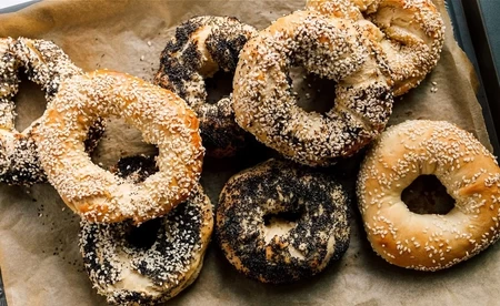 In contrast to its NY cousin, this version is smaller, thinner, sweeter, denser, with a larger hole, and baked in a wood-fired oven, at least in its namesake city.
