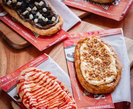 Large, flat pieces of deep-fried, yeasted dough. This festival staple is named for the backside of the national animal.
