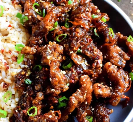 A Canadian-Chinese dish consisting of beef with a distinctive sweet gingery sauce. Created in Calgary.