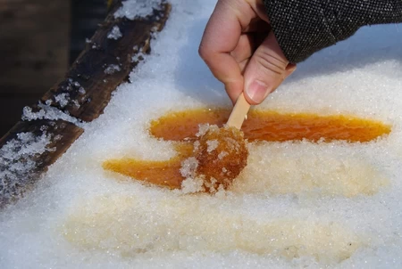 A confection made by pouring the sap of the national tree, boiled to a molten state, onto clean snow. The resulting soft candy is called tire sur la neige in French.