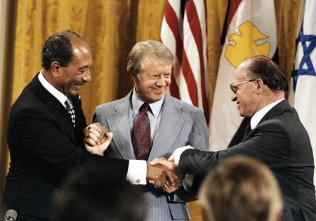 1978 - Leaders of Israel and Egypt for the Camp David Agreement for peace between Israel and Egypt