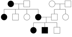 ![]() | Ligada al cromosoma X dominante | 25%