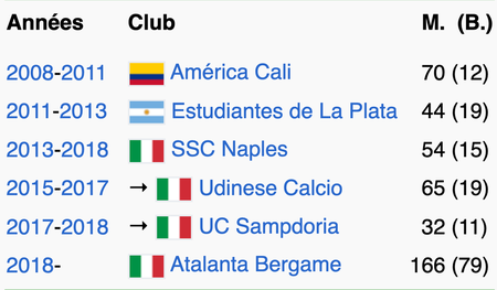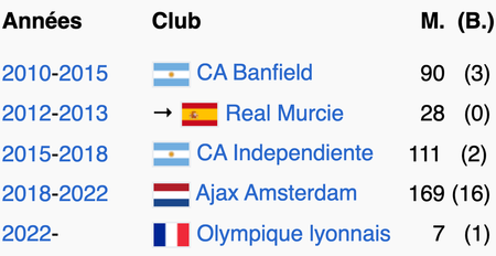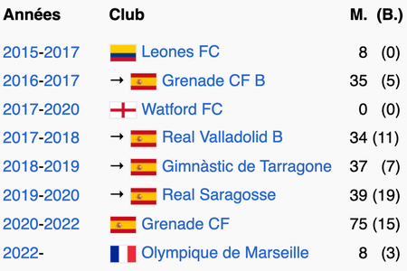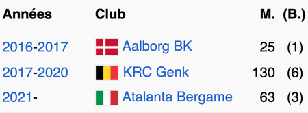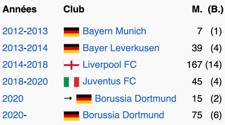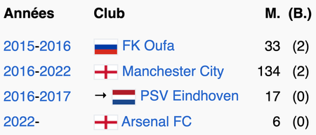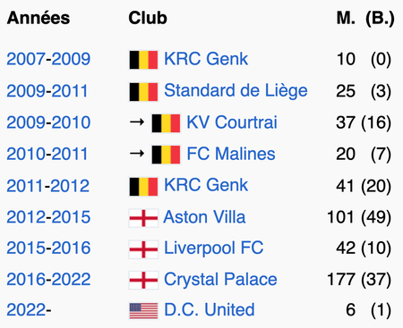 M. = nombre de matchs joués ; (B.) = nombre de buts marqués