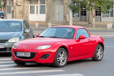 La Toyota rouge à côté de la Prius C a un nom : Toyota Corolla.