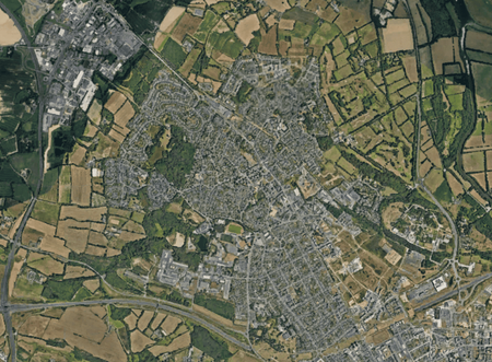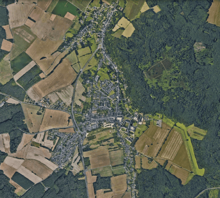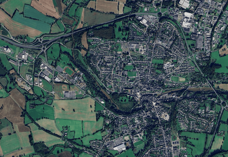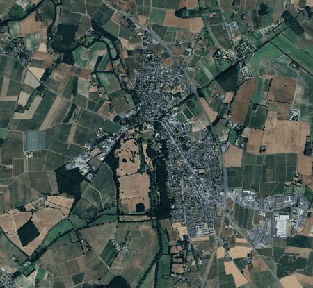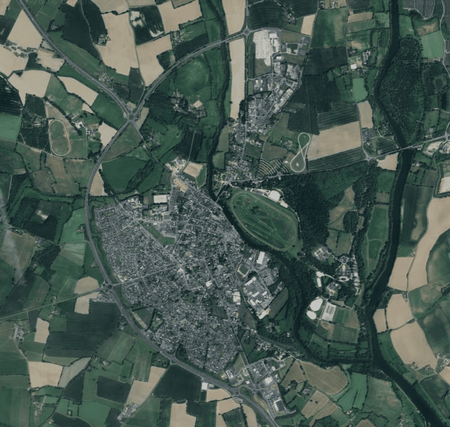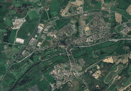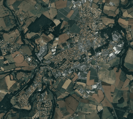 Cité des Mauges construite sur la double méandre de l'Evre