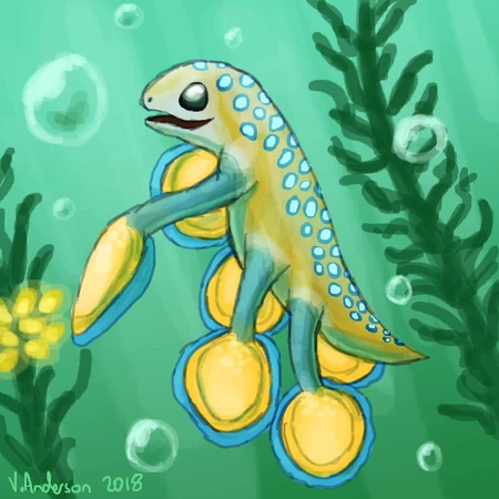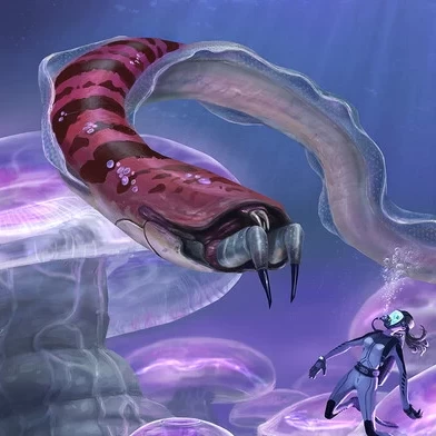 Name every creature in the concept/fanart/in-game images below that are featured in the game Subnautica.