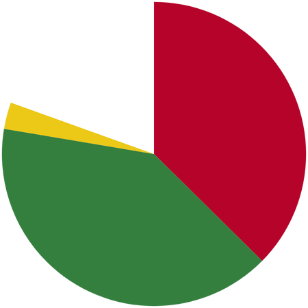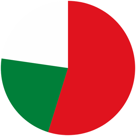 Ich habe eine Website verwendet, um Kreisdiagramme mit den Farben von Flaggen zu erstellen. Kannst du das Land anhand des Kreisdiagramms erraten?