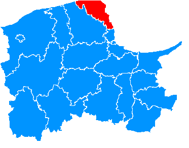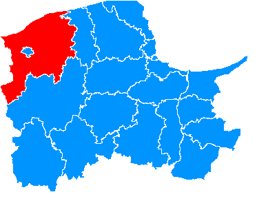 Quiz - Powiaty w województwie pomorskim (zaznaczone na mapie)
