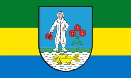 Dwa powiaty nie posiadają oficjalnych flag, w związku z tym użyte zostały ich herby