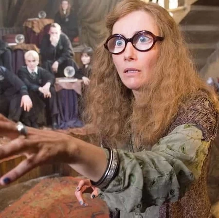 Salut, où as-tu trouvé l'image de Trelawney avec Malefoy en arrière-plan? Parce que j'étais persuadé qu'elle venait du 5e film lors de l'inquisition d'Ombrage. Et je viens de regarder le film et ça a en effet l'air de venir de là (elle a les mêmes vêtements, bijoux et vernis / et on voit Malefoy au fond avec les mêmes élèves dans la même disposition) mais le plan est légèrement différent que dans le film.