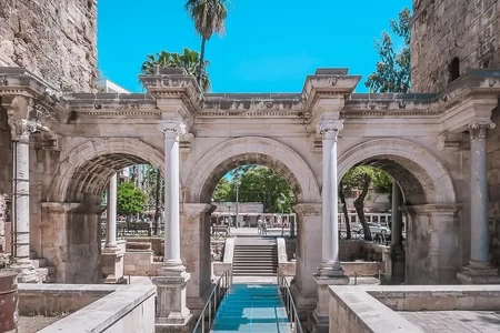 Dans l'ordre : le Mausolée de Saadi, la Mosquée Bleue, le Palais de Topkapı, la Mosquée Hisar, la Citadelle d'Ankara, la Mosquée Qolşärif, Sainte-Sophie, Anıtkabir, le Pont d'Hadrien,