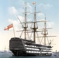 Royal navy flagship at the Battle of Trafalgar HMS {Victory}