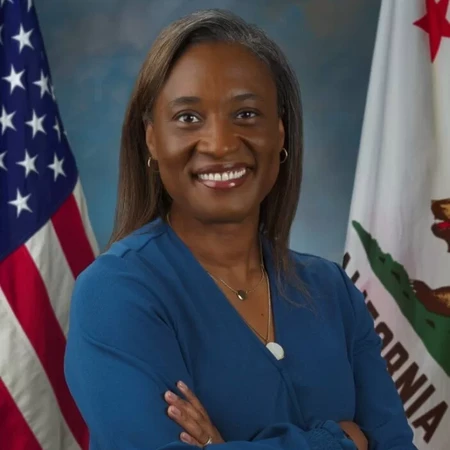 Dianne Feinstein's picture is captioned "John Seymour," whom she replaced. Feinstein was then succeeded by Laphonza Butler.