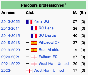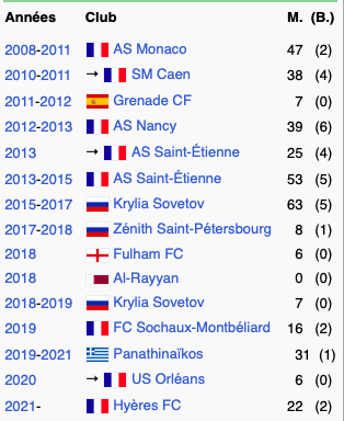Carriere footballeur