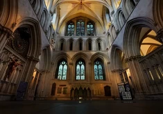 Legenda:biskup z Old Sarum wybierając miejsce świątyni wystrzelił z łuku strzałę,która trafiła jelen