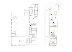 trzykondygnacyjny budynek obejmujący z trzech stron wewnętrzny, renesansowy dziedziniec