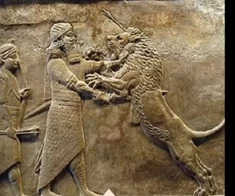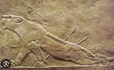 | Relief z pałacu w Niniwie przedstawiajacy władce asyryjskiego na łowach, w celu pokazania jego odwagi i siły | ![]() | 100%