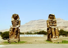 | Posągi faraona Amenhotepa III z 18 dynastii, jedyna zachowana część swiatyni grobowej tego wladcy z 1370r.p.n.e w Tebach (Z okresu nowego państwa) | ![]() | 50%