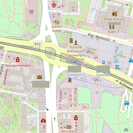 Mapy z openstreetmap.org, edytowane celem usunięcia nazw miast występujących w różnych miejscach (np. w nazwach muzeów, sądów, stacji).