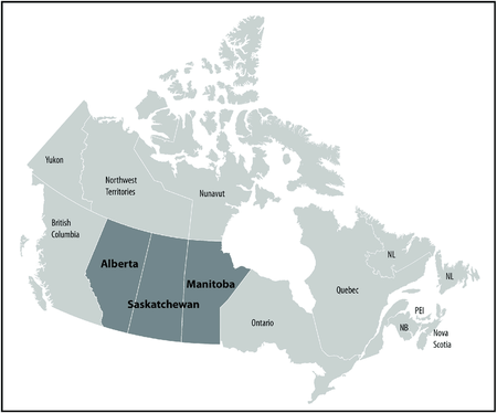Western territories partially covered by grasslands, commonly referred to as "Canada's breadbasket"