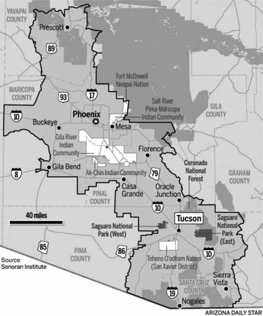 Urban megaregion in the south of Arizona