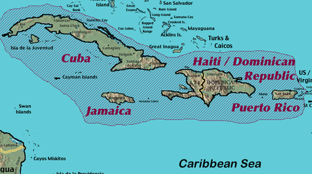 The largest islands in the Caribbean Sea