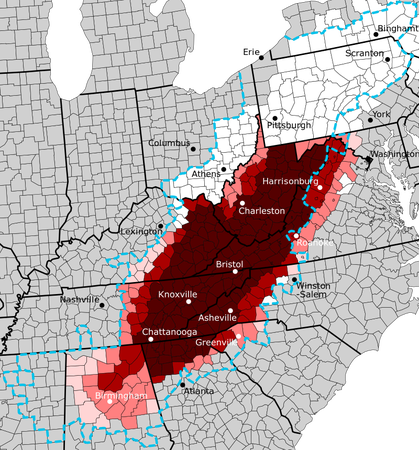 American highlands whose inhabitants are often portrayed as isolated and uneducated