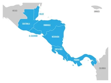 Tapering isthmus running from Southern Mexico to South America