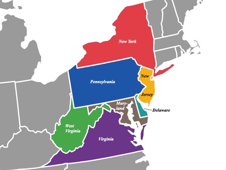 Northeastern and Southeastern states that have their origin in the Middle Colonies of the 18th century