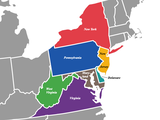 ![]() | Northeastern and Southeastern states that have their origin in the Middle Colonies of the 18th century | Mid-Atlantic | 35%