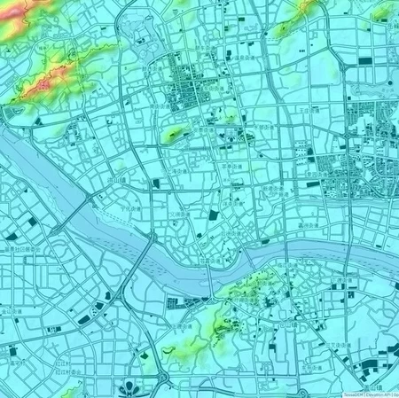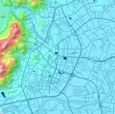 根据城区地形地图写出广西各地市 Guangxi cities on urban topographic map