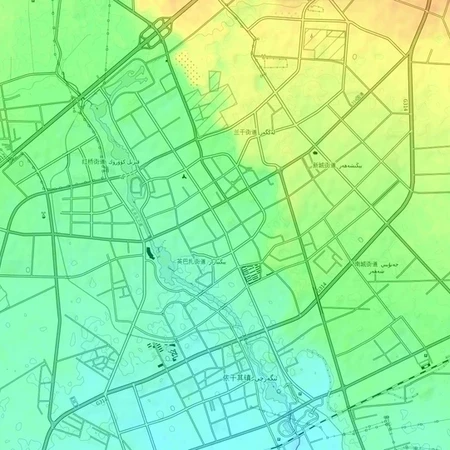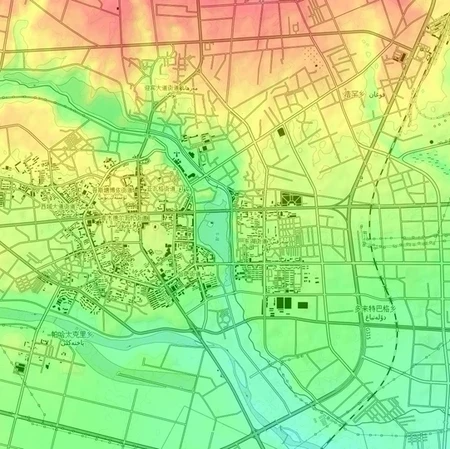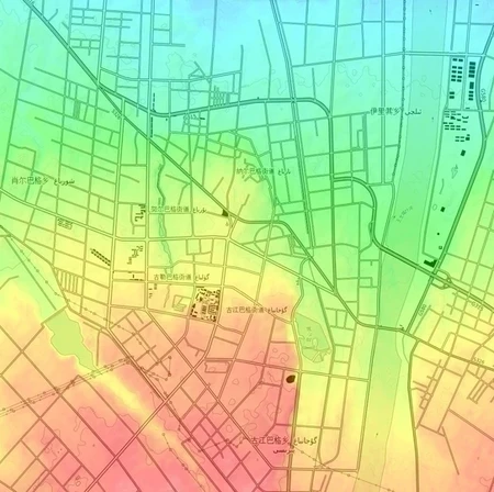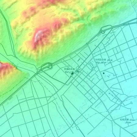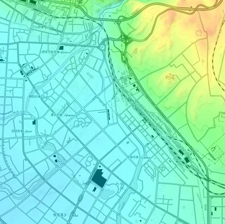 根据城区地形地图写出新疆各地市 Xinjiang cities on urban topographic map