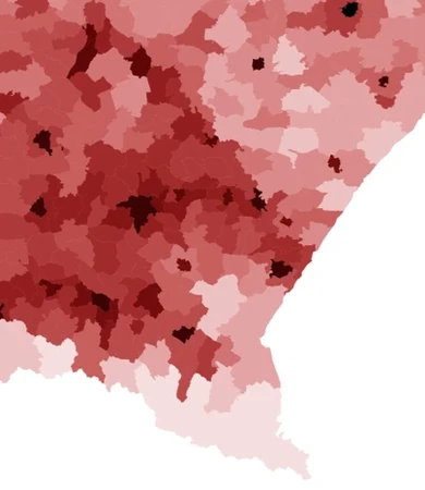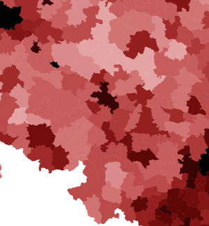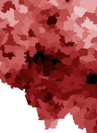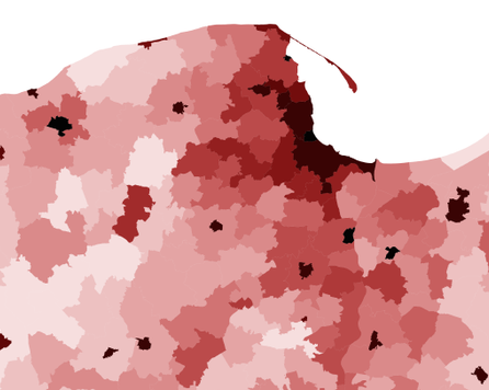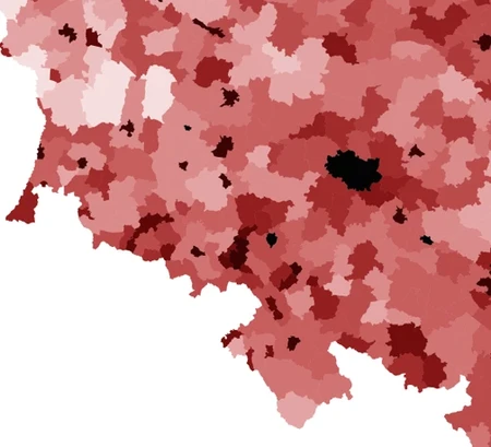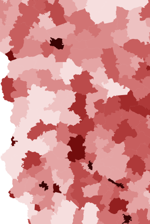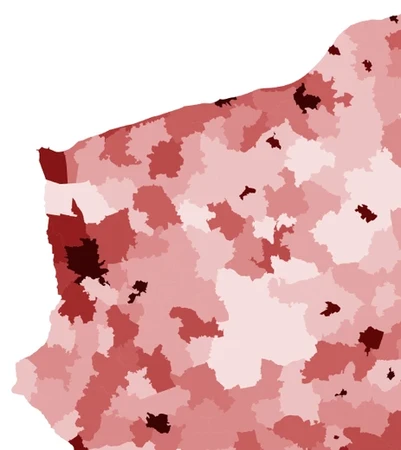 Im ciemniejszy kolor, tym wyższa gęstość zaludnienia