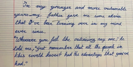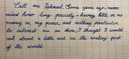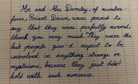 Cursive handwriting is known to be useless and quite unreadable. And teachers have to suffer the reading of it for too long. So, I'll make you suffer as well (evn though Im not a teacher). Can you guess the books by these messy handwritten first 2 sentences ?