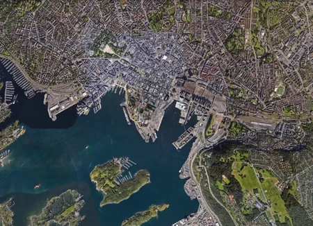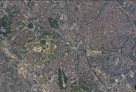 Zdjęcia przedstawiają widoki satelitarne wybranych europejskich stolic. Wszystkie rzuty są wykonane w osi północ-południe. Czy potrafisz rozpoznać je wszystkie?