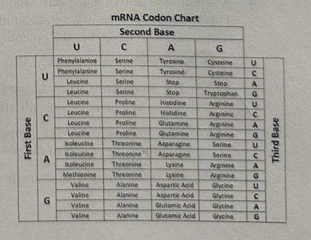 3. Given the genetic sequence TCAGGAATGTCTACTAGCGCGCTGTAAAAT, what is the sequence of amino acids that would be translated?