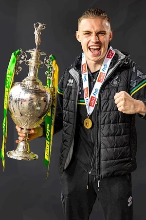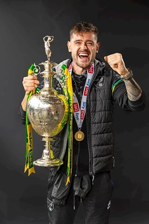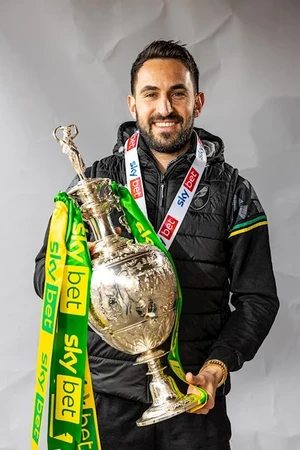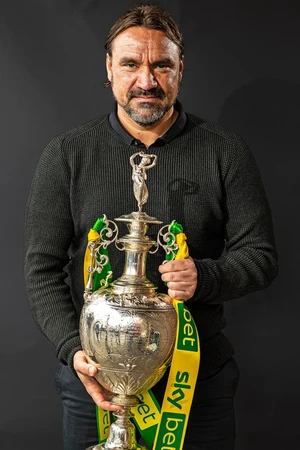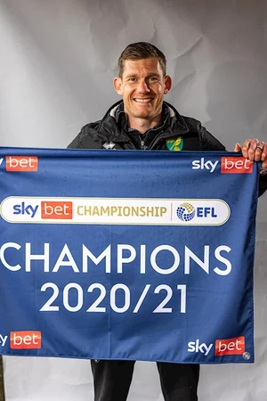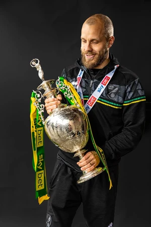 Can you name the players and manager in this series of photos released by Norwich City with the players celebrating with the Championship trophy after Norwich finished the 2020–21 Championship as champions and secured promotion to the Premier League?