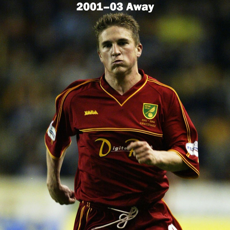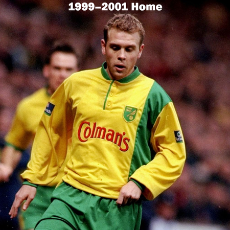 Can you name the players who are wearing the Norwich City kits? All of the home, away, special, and charity kits worn by Norwich City from 1999–2012 are shown, but do you know who is wearing the kit?