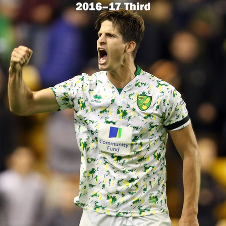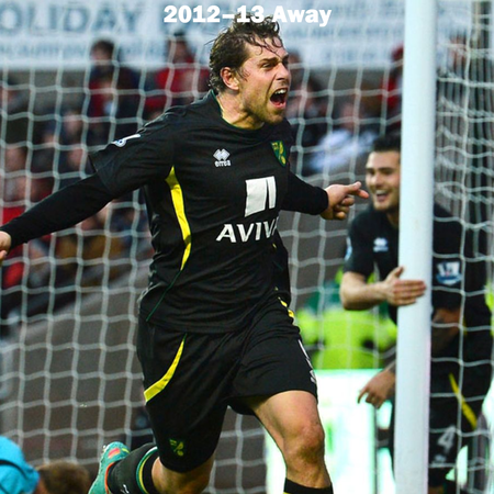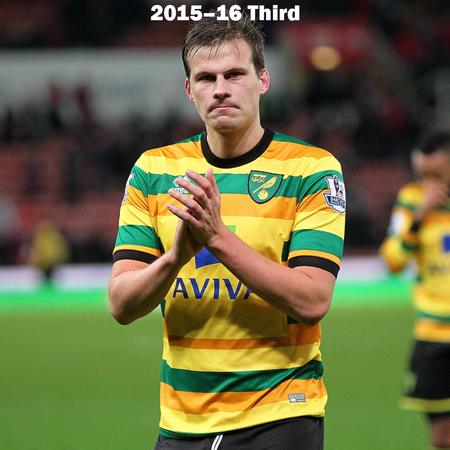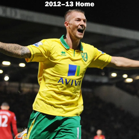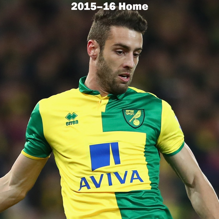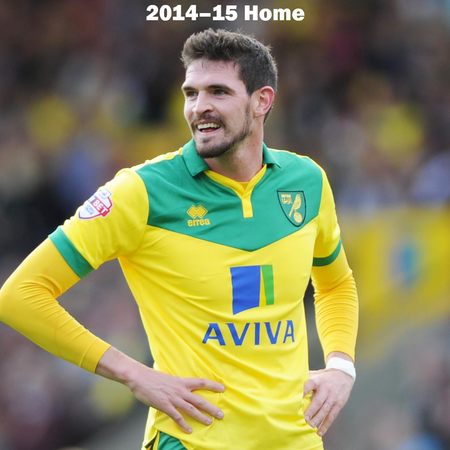 Can you name the players who are wearing the Norwich City kits? All of the home, away, third, and charity kits worn by Norwich City from 2012–2018 are shown, but do you know who is wearing the kit?