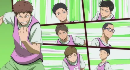 Motoya Komori played against Ushijima on a Junior High game in wich Dōshō Junior High (Komori's team) faced Shiratorizawa Academy Junior High (Ushijima's team). Tōru Oikawa and Wakatoshi Ushijima faced multiple times. Shinsuke Kita faced Wakatoshi Ushijima in a Interhigh game wich faced Inarizaki and Shiratorizawa. Yuu Nishinoya faced Wakatoshi Ushijima in the final of the Spring High-Miyagi Prefecture Representative Playoffs. Yoshiki Towada played against Wakatoshi Ushijima during the second round of the Interhigh Preliminaries.