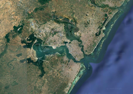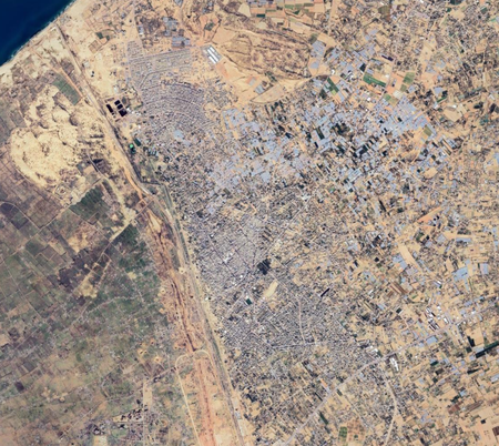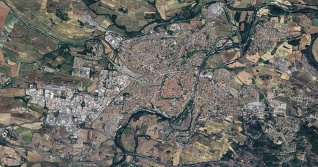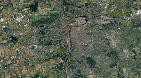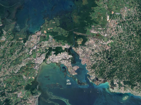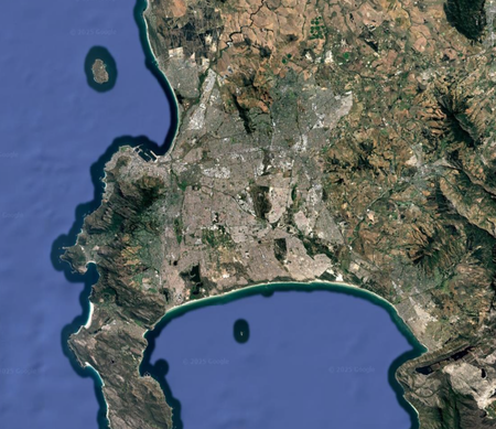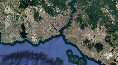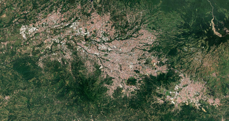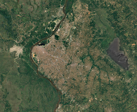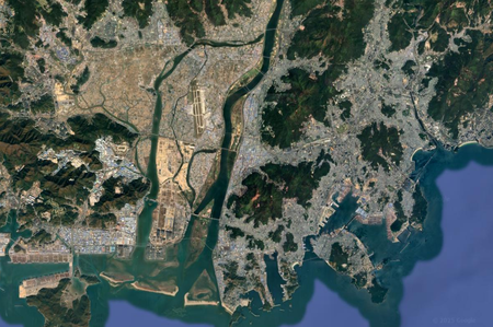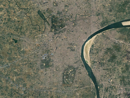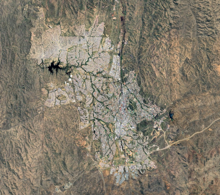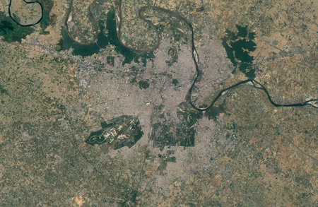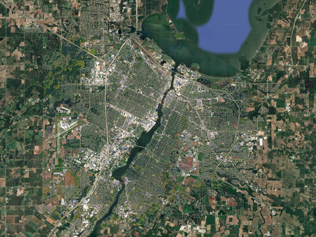 Identify each city by the satellite image of it. North is always up. (I recommend zooming in a bit past your browser's default.)