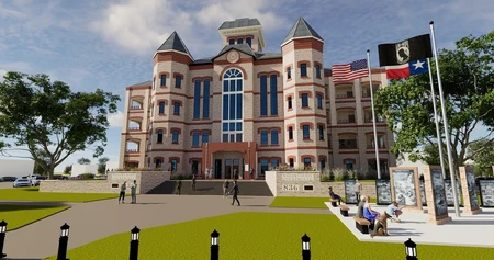 Waller County currently has no courthouse, a render of the new courthouse currently under construction is used.