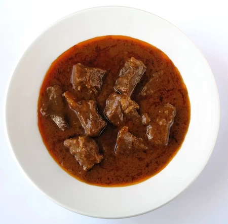 Kawałki mięsa duszone z papryką i cebulą