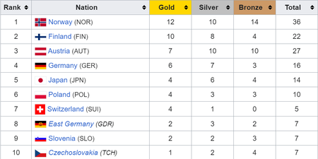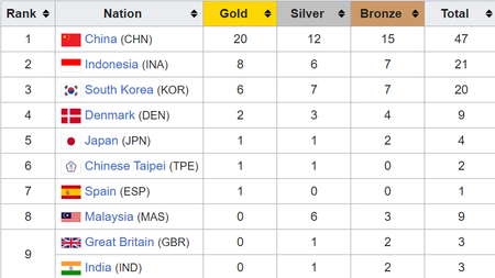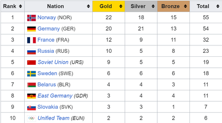 All tables sourced from Wikipedia.