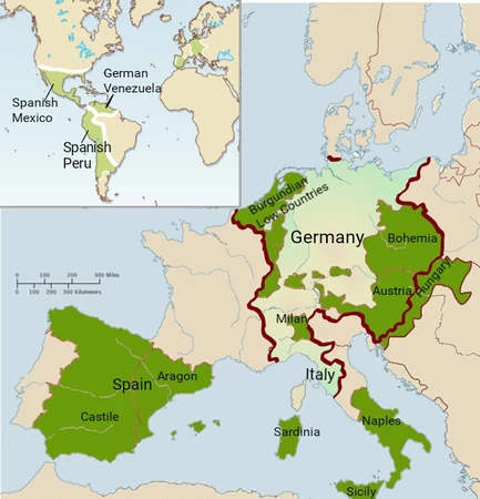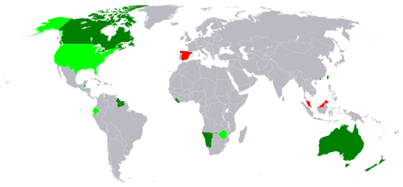 The legend on wikicommons says that red countries are countries that used to use a dollar currency. I see how having Spain there could cause confusion, so I'll edit the hint so that it points more to the countries in green, thank you!