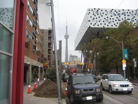 The Hilton entrance in the background reveals the location of the last picture.