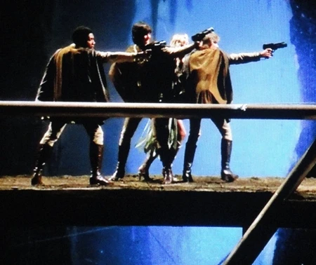 Look at each photo and say whether it is from Star Wars (SW), Star Trek (ST), or Battle Star Galactica (BSG). Or, is it from none of the above? (none)