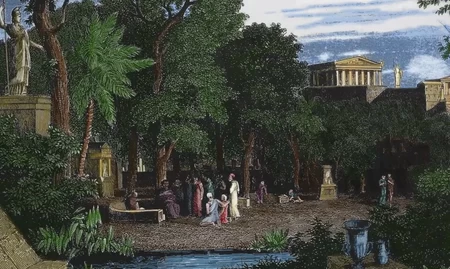 'The Philosopher's Garden': inspired by Epicurus' garden communities; he lived a simple life with basic resources, preferring a close of group of friends over intimate relationships