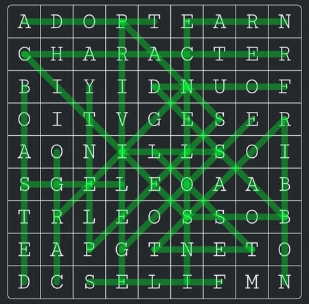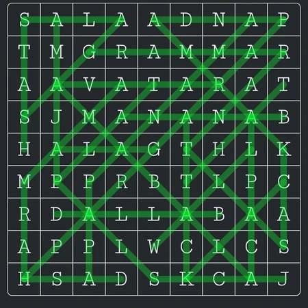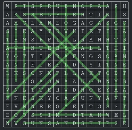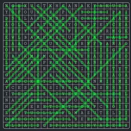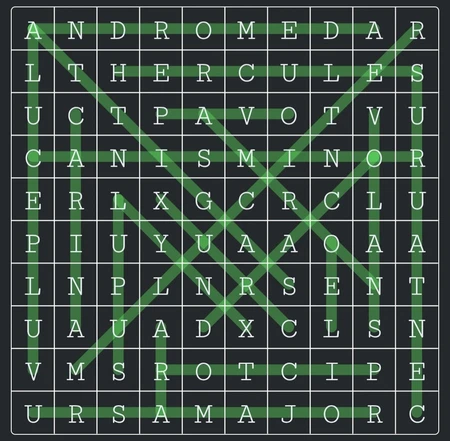 • Make sure there is a good spread of words horizontally, vertically and on both diagonals, and also try to have some diagonal words that come out from the edges of the puzzle, if the "walls" only include horizontal and vertical words this can make it feel boxed-in, with some words just being around a smaller puzzle.