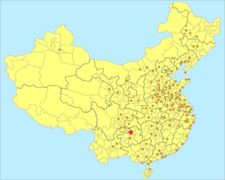- Xichang (西昌, pop. 712,434) - Located in southern Sichuan, Xichang is known as the "Aerospace Capital" with its satellite launch centre, one of the four in China (along with Jiuquan, Taiyuan and Wenchang).
